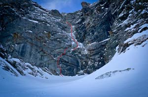 Первоначальный план - соло первопроход на Schrammacher Nordwand - пришлось изменить из-за большого количества снега и трудностей при подходе к стене одному. "На прохождение 200-метрового ключевого участка ушло три часа, много времени заняла организация страховки...