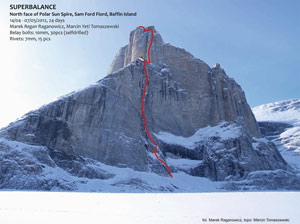С 14 апреля по 7 мая 2012 года поляки Марек "Regan" Раганович и Марчин "Yeti" Томашевски (Marek Raganowicz, Marcin Tomaszewski) проложили новый бигвольный маршрут под названием Superbalance (VII, A4, M7+) на Полар Сан Спайя, Баффин (Polar Sun Spire, Sam Ford Fiord, Baffin Island).