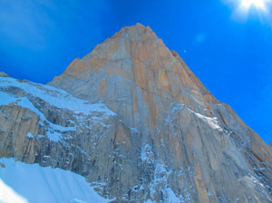 Красивая и сложная линия, проложенная безупречно с точки зрения этики первопрохождений, высоко поднимает планку на начало восходительского сезона в Патагонии. "Мы пролезли 28 новых участков, затем вышли на маршрут Феррари (финальные шесть веревок), мы - первые, кто сделал первопроход в чистом альпийском стиле на восточной стене Фиц Рой. Мы не забили ни одного крюка.