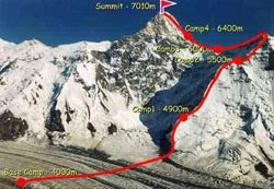 Наконец-то установилась погода, как говорит начальник лагеря «Северный Инылчек» Александр Скорняков: «Миллион на миллион». С утра, выполняя очередной рейс на Южный Инылчек, арендованный Казбеком Валиевым вертолет легко и непринужденно осуществил снайперскую выброску веревок, продуктов и газа на перемычку между пиком Чапаева и Хан-Тенгри на высоту 5850 м, где находиться установленный накануне третий лагерь. Группа гидов-спасателей в составе Николая Жилина (г.Екатеринбург), Александра Чернявского (г.Нижний Тагил), Алексея Баженова (г.Алматы), получив поддержку с воздуха, продолжила обработку Западного гребня выше лагеря «3». На смену им вверх скоро выходит группа Вадима Поповича (г.Нижний Тагил). В задачу этой команды входит навешивание перил в верхней части Западного гребня до вершины.