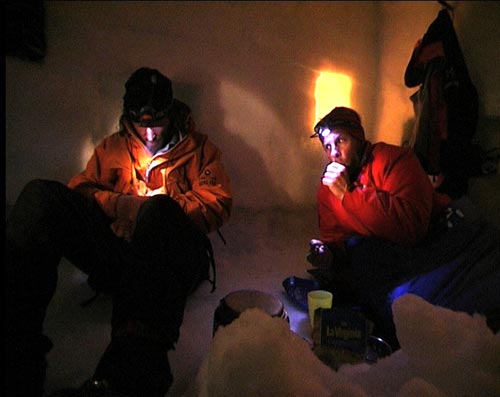 Жестокий шторм продолжался пять дней, во время которого парням приходилось окапываться, оставляя вход в ледовую пещеру свободным.