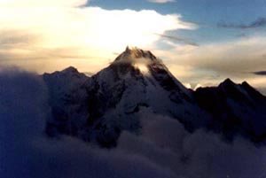 С ночи мокрый непрекращающийся снег. Лавины летят, просто как ошпаренные. Ночью были такие порывы ветра, что думал улечу вместе с палаткой. Хорошо, что мужики успели спуститься с горы.