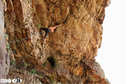Однако после работы на маршруте, (и, очевидно, прибавив в форме по сравнению с прошлым годом :) , Клинтон распечатал проход через нависание с помощью целенаправленных точных силовых перехватов и полного контроля равновесия.
