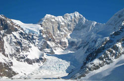 3 мая - семичасовой подход под маршрут с лыжами на плече через шестимильный ледопад перепадом примерно 900 метров, рывок вверх мимо опасных сераков к относительно безопасной площадке для лагеря под бергшрундом. К сожалению, стена вогнута и простреливается при любых условиях: камнепадом палатку разорвало в нескольких местах, пока не была вырыта снежная пещера.