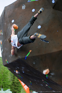 Десять приглашенных спортсменов и пять скалолазов, отобранных после квалификационных раундов, у женщин и мужчин соревновались в болдеринге. В финале, как предполагалось, по принципу на выбывание проигравших до третьей проблемы должно было добраться по три участника, но в результате четыре мужчины и пять женщин сделали заключительный раунд наравных. Участники имели возможность попрактиковаться на стенде накануне, и Вудс заявил постановщикам трасс, что третья самая сложная мужская трасса "не проходится" и попросил ее слегка облегчить. В итоге Дэниел сделал первые две проблемы с первой попытки, а на третьей так и не смог зафиксировать тор без излишнего раскачивания. В то время, как Пуччио прошла все три женские проблемы с первой попытки, близко преследуемая Paige Claassen. Как результат, оба семнадцатилетних победителя, Вудс и и Пуччо, получили по 2 500 $ призового фонда за свои старания.