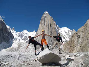 У нас всё по плану. Вчера искали подход под стену через ледник. Cреди нагромождения сераков и морен это было нелегко, но нам удалось.