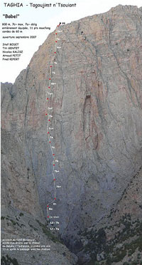 Фред Женте, Николя Калиц, Стефани Боде и Арно Пети (Fred Gentet, Nicolas Kalisz, Stephanie Bodet, Arnaud Petit) сделали первопроход маршрута Babel (7c+, 800м) в марокканском ущелье Taghia Gorge