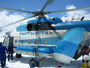 Вчера прилетели на ледник на 4000. Разместились в БЛ, очень хорошо, большие палатки на 2 человека, очень уютно, просторно, раскидали все свое оборудование получилось как в пресс-центре в горячей точке. Накормили до отвала, персонал (девушки) приветливые и очень даже ничего для таких мест (видели вчера на фото, зовут Маша), чего их сюда несет не понятно. 2 месяца в снегах, из окружения - отмороженные альпинисты и непонятные для русской души буржуи . Все 4 дня непогоды (когда мы сидели в Каркаре) здесь валил снег и сейчас, когда вышло солнце, повалили лавины, можно сказать одна за одной, как на фронте. Мы надеемся что традиционная большая лавина с Победы сойдет того как мы будем пробиваться на Чон-Терен, в любом случае пойдем с предосторжностями.
