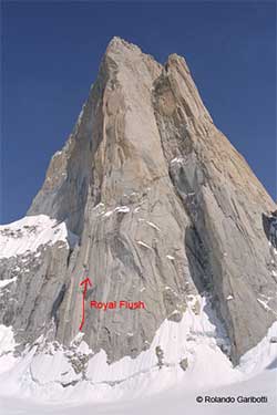 В 1998 году Guner Gabel, Michael Schafroth и Rainer Treppte удалось совершить первое законченное восхождение (3 дня туда-обратно) по Royal Flush, тем не менее несколько верёвок были провешены.