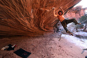 Дин Поттер (Dean Potter) замочил на домашних песчаниках в Moab (Юта) потолочную трещину на 29 перехватов: «Было высоко, тяжело и страшно» Как известно, Поттер не категорирует маршруты, однако для сравнения привёл Crack House, 80-футовую потолочную трещину, пройденную им несколько дней назад, по словам Дина, между этими двумя болдерингами – гигантский шаг. Для справки, принято считать, что категория Crack House 5.13а