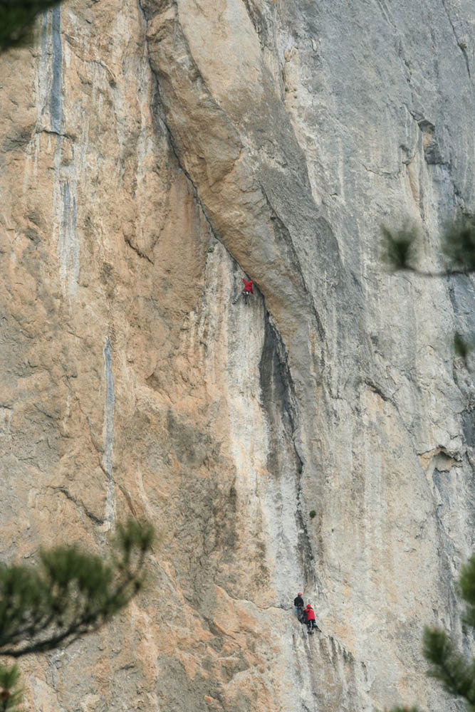 где они прошли свободным лазанием 500-метровый маршрут Quinto