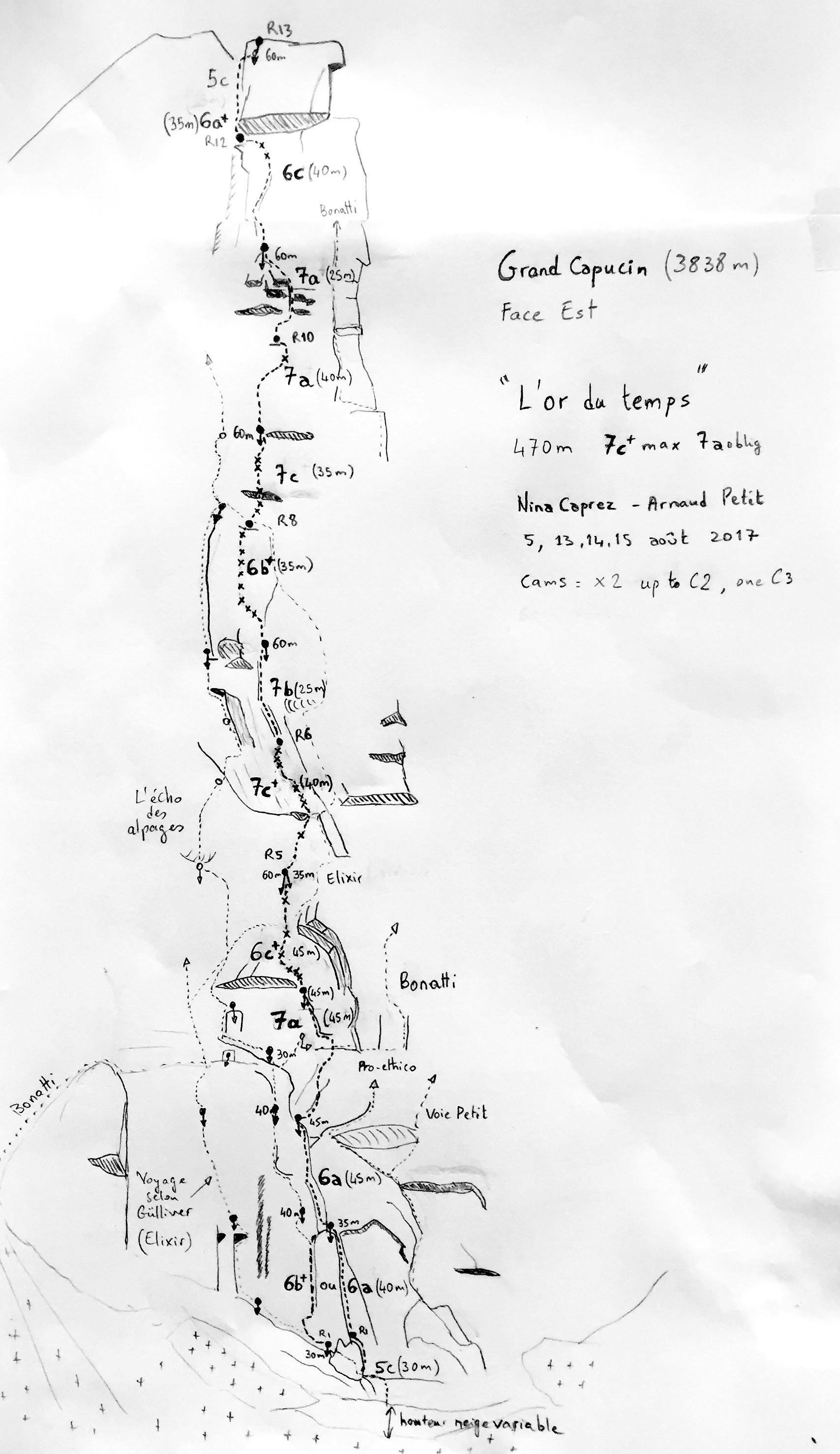 04.09.2017 Нина Капрез и Арно Пети. Гран Капуцин. Схема и нитка маршрута