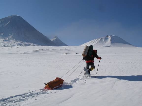 В этот день мы спокойно дошли до перевала между вулканами Средний и вулканом Крестовская сопка. Затем спустились с перевала на плато Антарктида. К месту нашей ночевки шли вдоль стен вулкана Крестовская сопка. Так мы ушли ближе к перевалу между вулканами Крестовская сопка и Ушковская сопка
