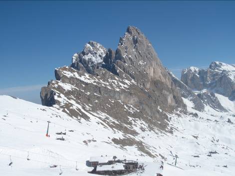 Народу никого, отратраченные трассы…Хорошо! Прокатились над трассами по нетронутому снежку. Нашли удачную трассу в Альбе – черную и длинную – летишь – аж ветер в ушах!