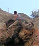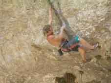 ...Скалы сильно нависающие, легко крошатся, солнце и дождь мешают (большей частью) страховщику. Маршруты тяжёлые. Простых практически нет...