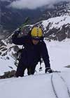 Дальше еще метров тридцать на ито, затем очень напряженная веревка: лазанием по заснеженным и обледенелым скалам выводит на полку под «книгой»- здоровенным внутренним углом, отсюда Бабицкий уходит траверсом вправо.