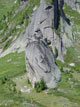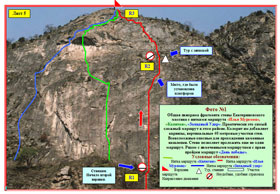 Первая веревка маршрута начинается с морены. Если веревку не навешивать, можно в середине маршрута, на первых сорока метрах схватить кучу адреналина.