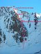 Подход под маршрут с коронской хижины около часа. Первая часть маршрута - ледовый кулуар 40-45%, 7-8 веревок. По льду подходим под перемычку и вылазим налево в микстовый желоб 4+.