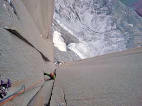 Южноафриканский маршрут - поразительная линия, которая идет через огромный двугранный угол, по середине восточной стены. Это красивая и очевидная линия, ради которой нам пришлось вернуться на Torres del Paine