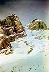 Главное – правильно выбрать путь и не попасть в лавину (а летом – под камни с башни). А вот подняться с перемычки на Ю. Ушбу не так просто, по крайней мере зимой.