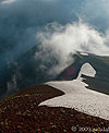 Несколько микстовых веревок, зимнего льда и мы вылезаем на вершинный гребень. Видимости никакой. Снег и сильные порывы ветра. Наконец находим мульду, в которой можно хоть как-то укрыться.