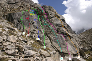 Трассы в основном тренажерные: длинные движения, динамика, подхваты и щипки. Разнообразие рельефа дает возможность отдыхать на трассах, но за счет длинны они сохраняют свою категорию