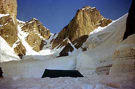 Мы шли по мягкому сырому снегу, под которым местами стояла – а кое-где журчала – вода. На полпути заметили одинокую палатку с флагами, приблизились. Флаги обернулись развешенной мокрой одеждой...