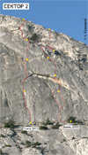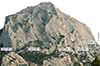 В этом секторе находятся маршруты: «Галочка» 3Б, «Рыжий угол» 5А, «Два карниза» 5А, «Японский садик» 5А, «Вечная молодость» 3Б, «Гребневая двойка» 2А и некоторые другие.