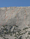 В этом секторе находятся маршруты*: «Белый квадрат» 5Б-6А, «Запятая» 5А, «Бодун» 5Б-6А, «Белый треугольник» 5А, «Хохла по зеркалам» 5Б, «Восьмерка» 5А, «Большой карниз» 5Б, «Хохла через карниз» 5Б-6А, «Грань» 5Б, «Бровь» 5Б.